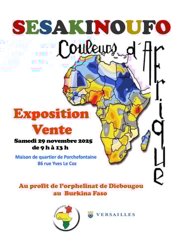 Samedi 18 novembre, dans le cadre du Festisol (Festival des Solidarités de la Ville de Versailles), Stand Sesakinoufo, pour vous renseigner et profiter de la vente d'objets, sur la place du Marché Notre-Dame, Carré à la Marée