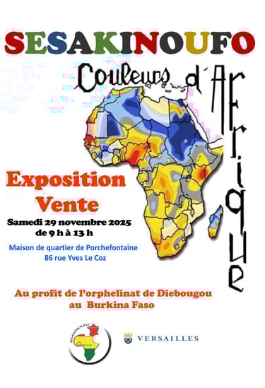 Samedi 25 novembre 2023: Fête Solidaire organisée par SESAKINOUFO à la Maison de quartier de Porchefontaine, avec animation-spectacle pour les enfants, goûter, expo-vente, soirée pour les adultes.